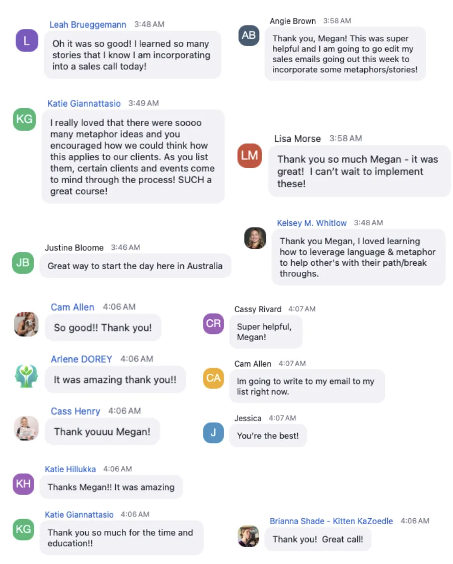 2. You show up, soak in the magic, and leave with tools that change how you talk forever